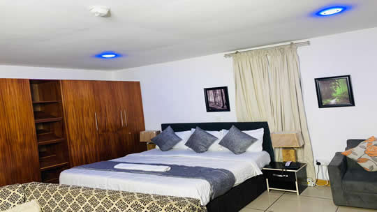 Book NowWe offer our guest a perfect blend of relaxation, comfort and convenience with free WIFI. All our rooms are equipped with AC, Table top chillers, Smart Flat screen TV (50 inch’- 65 inch’) which comes with DSTV Premium Package + PVR access (i.e. every guest has the PVR remote), NETFLIX and YOUTUBE.